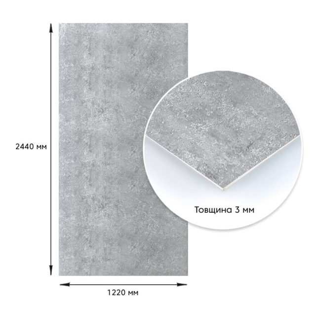 Декоративная ПВХ плита 1,22м х 2,44м х 3мм Бетон SW-00001410