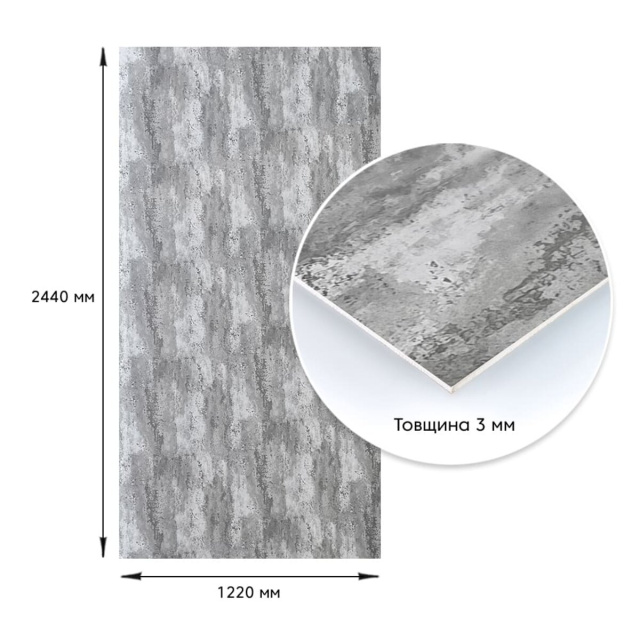 Размер ПВХ плиты - 2440ммх1220мм. Толщина - 3 мм. Вес листа - 19кг