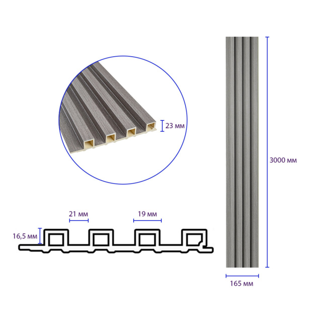 UA MarketДніпроТовари для домуТовари та послугиДекоративна рейкаРейки 165*23*3000ммРейка декоративная WPC стеновая 3000х165х23мм Стальная серая SW-00001528