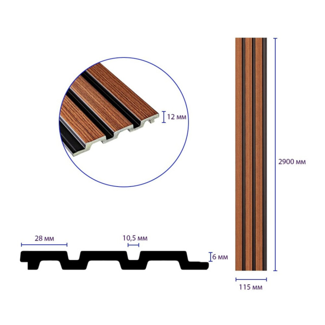 Рейка декоративная PS 2900х115х12мм Каштановый SW-00001743