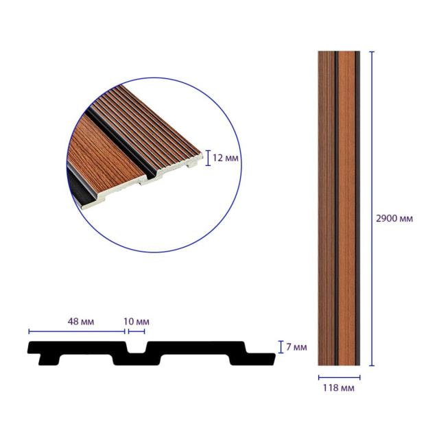 Рейка декоративная PS 2900х118х12мм Теплый каштан SW-00001753