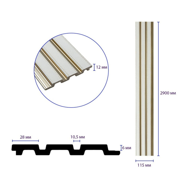 - Площадь покрытия: 115х2900х12 мм – 0,34 м², количество на 1 м² – 3 единицы