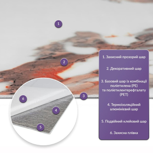 Материал: PE+PET, состоит из смеси двух полимеров: полиэтилена (PE) и полиэтилентерефталата (PET) Размеры: Рулон: 60 см х 300 см х 2 мм Вес: 60