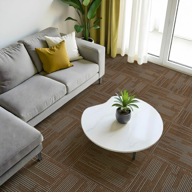 Ковролин в плитках — это современное модульное покрытие в виде квадратов 50×50 см, толщиной 3–4 мм, которые монтируются за счёт собственного веса или фиксируются с помощью клея. Отличается высокой плотностью ворса, благодаря чему материал износостойкий, влагостойкий и подходит для покрытия как малых, так и больших площадей, в том числе помещений с высокой проходимостью — офисов, коридоров, залов или жилых комнат.