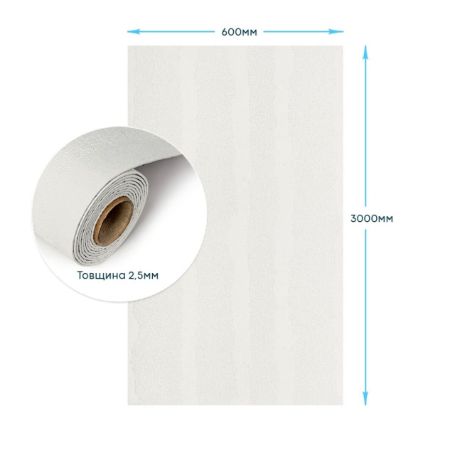 Площадь покрытия: 600х3000мм – 1,8 м²