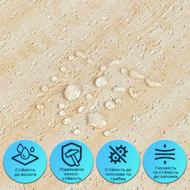• Устойчивость к влаге и пару Гибкая штукатурка не впитывает воду, не набухает и не деформируется под воздействием влаги. Материал устойчив к парам, не способствует образованию плесени и подходит для помещений с повышенной влажностью — кухонь, ванных комнат. Может применяться в зоне кухонного фартука (при отступлении от плиты на 25-30 см).