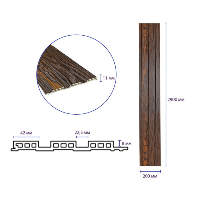 Рейка декоративная WPC стеновая 200х11х2900мм SW-00003008